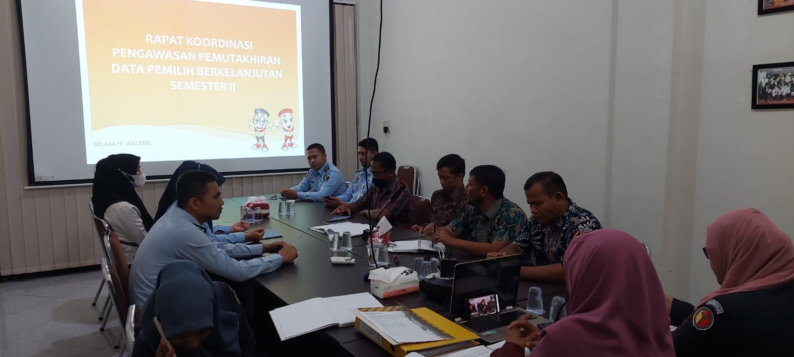 Anggota KIP Aceh Besar menghadiri Rapat Koordinasi Pengawasan Pemutakhiran Data Pemilih Berkelanjutan (PDPB) Semester II di kantor Panwaslih Aceh Besar