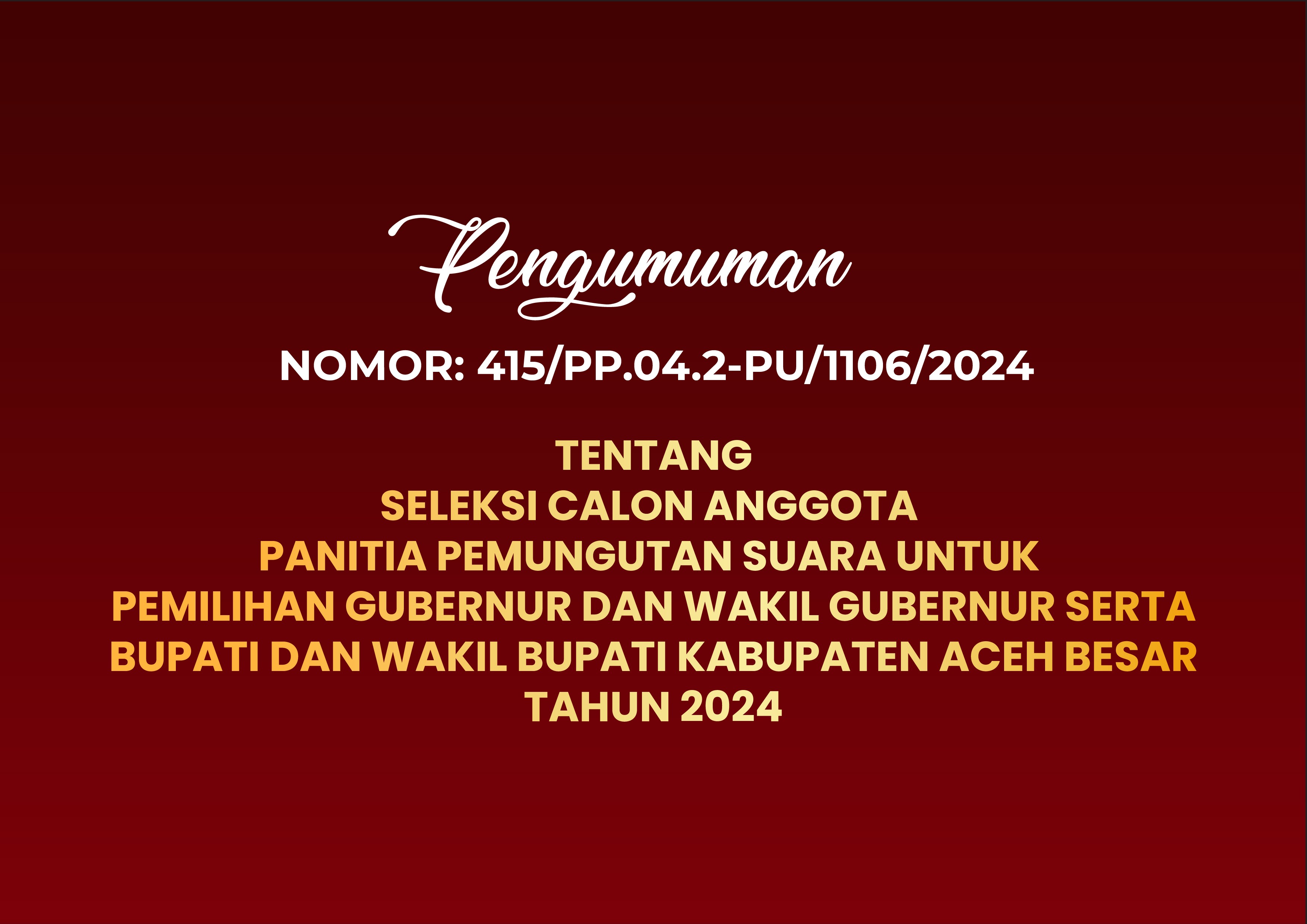 PENGUMUMAN SELEKSI CALON ANGGOTA PANITIA PEMUNGUTAN SUARA UNTUK PEMILIHAN GUBERNUR DAN WAKIL GUBERNUR SERTA BUPATI DAN WAKIL BUPATI KABUPATEN ACEH BESAR TAHUN 2024
